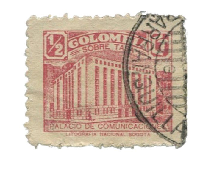Sello de Colombia ½c palacio de comunicaciones Año: 1945