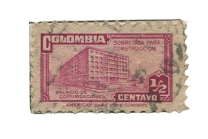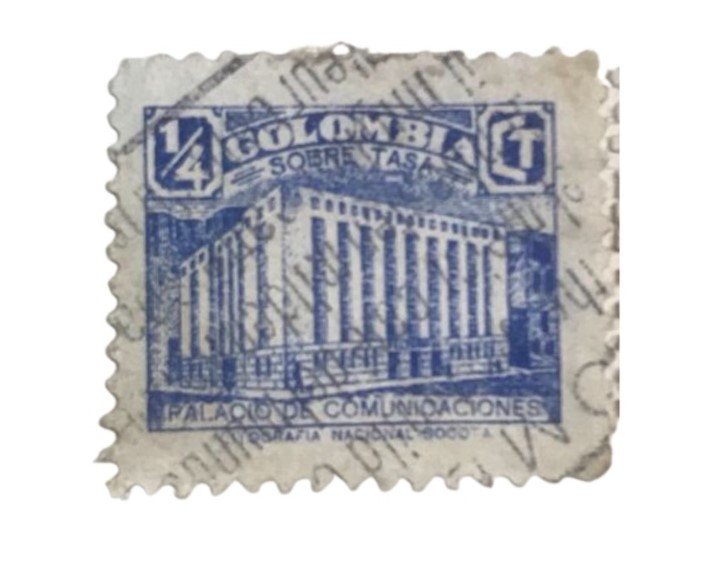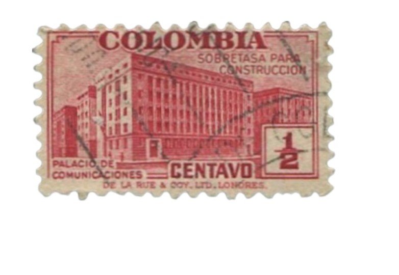 Sello de Colombia ½c palacio de comunicaciones Año: 1945