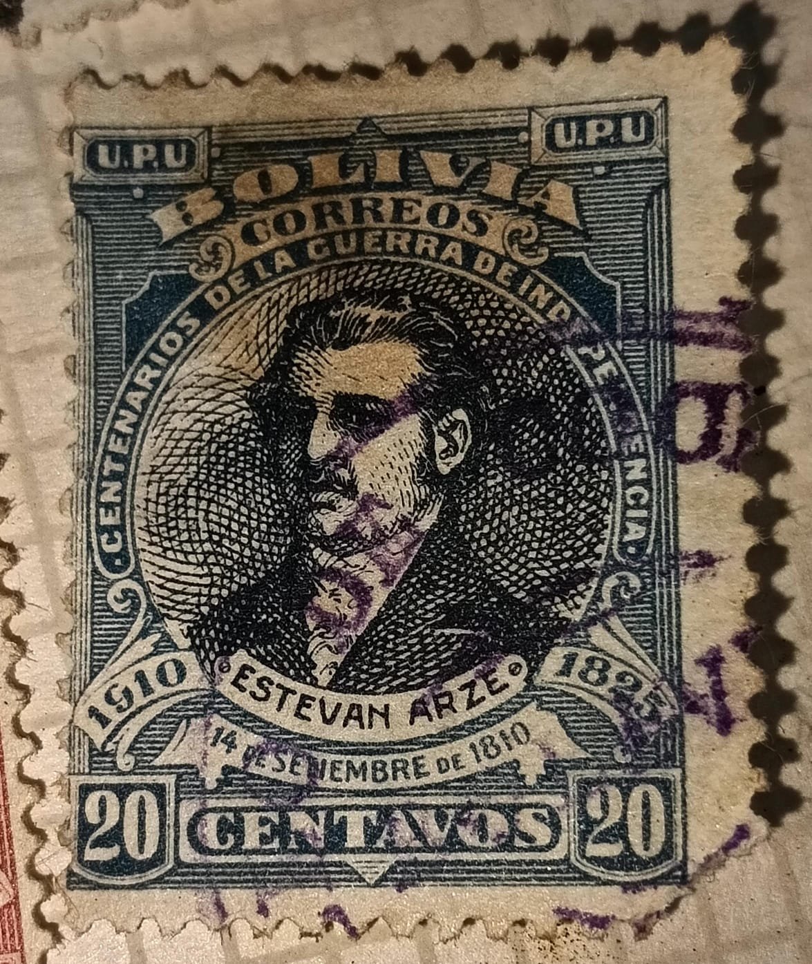 Estampilla Bolivia Estevan Arze 20 C 1910