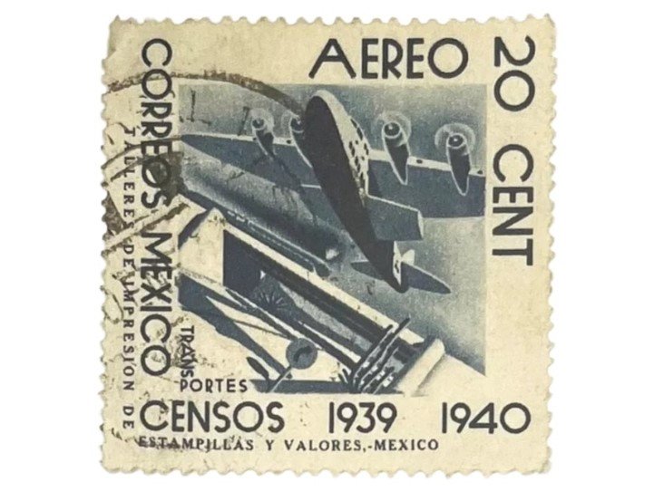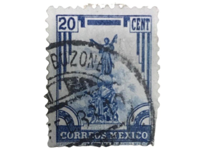 Timbre Postal Mexicano de 20 Centavos azul Año: 1934