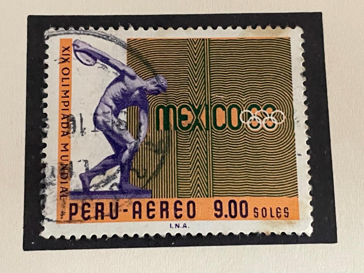 Estampilla de las "Olimpiadas de Mèxico" 9.00 Soles, Año 1968